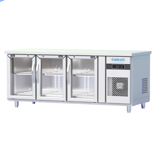 Tủ Bàn Đông Cánh Kính ColdRaft CR-BD1860K có dung tích 340L, được sử dụng nhiều tại các nhà hàng, bếp ăn công nghiệp, khách sạn, quầy bar,… có quy mô nhỏ hoặc được dùng kết hợp với các tủ dung tích khác. Tủ Bàn Đông Cánh Kính ColdRaft CR-BD1860K nằm ngang, kích thước 1800x600x845 (mm) là mẫu tủ bảo quản thực phẩm công nghiệp phục vụ vận hành ở chế độ đông, thiết kế tủ bàn với cánh mở phía trước, cho phép thao tác sơ chế ngay trên mặt bàn. Sản phẩm sở hữu hệ thống nan giá inox đa tầng thuận tiện cho việc sắp xếp, trưng bày thực phẩm, nước uống.